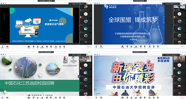 各企业针对公司基本情况、企业文化、业务线及招聘需求等依次进行介绍,与会学生和意向企业的宣讲人员展开交流。各家企业开通简历投递通道,在疫情特殊时期助力石油学子顺利就业。